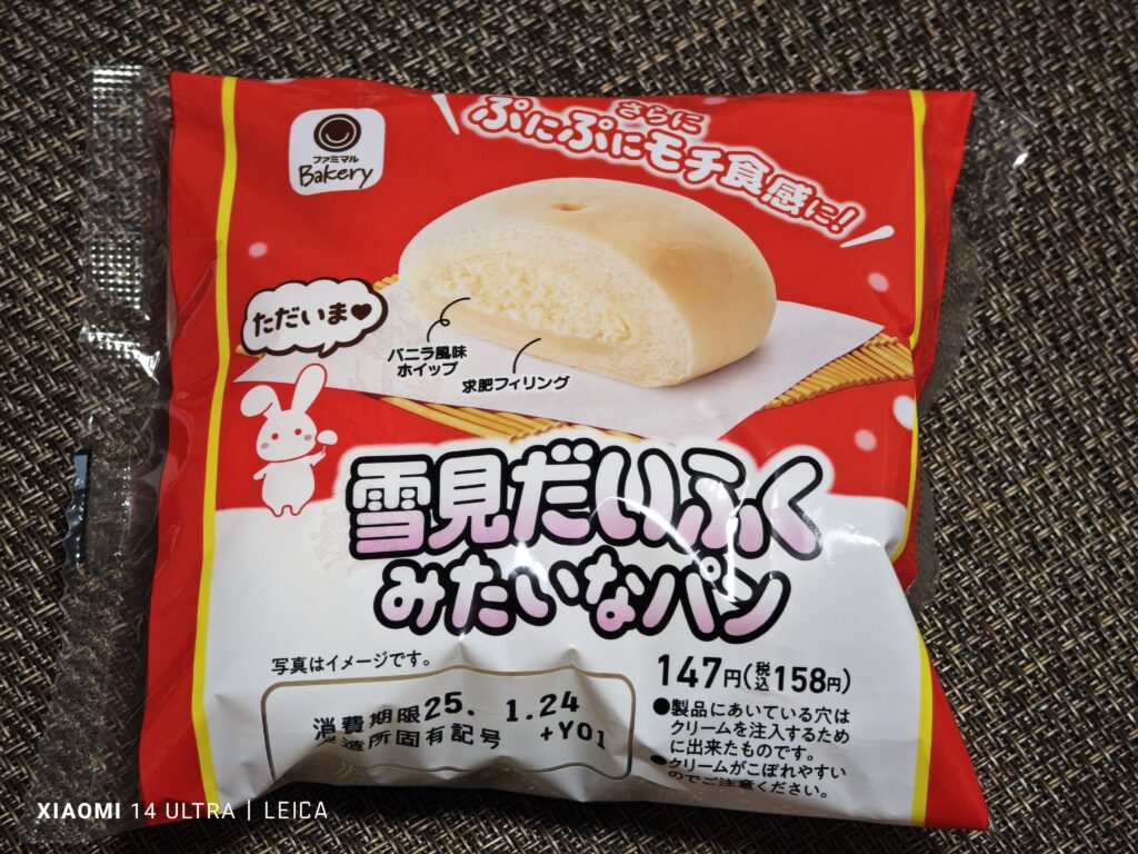 ふわっとしたパンに雪見だいふくの香りと甘さが感じるクリームと餅が入った一品で、クリームの雪見だいふく感の再現力が良い感じだった。