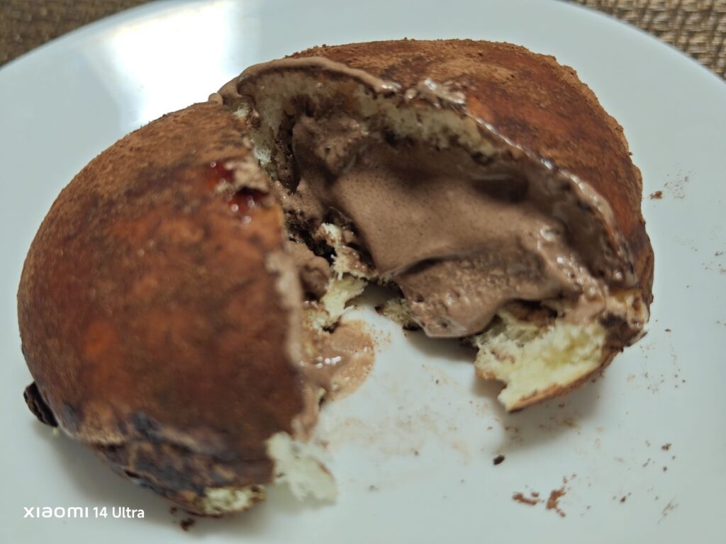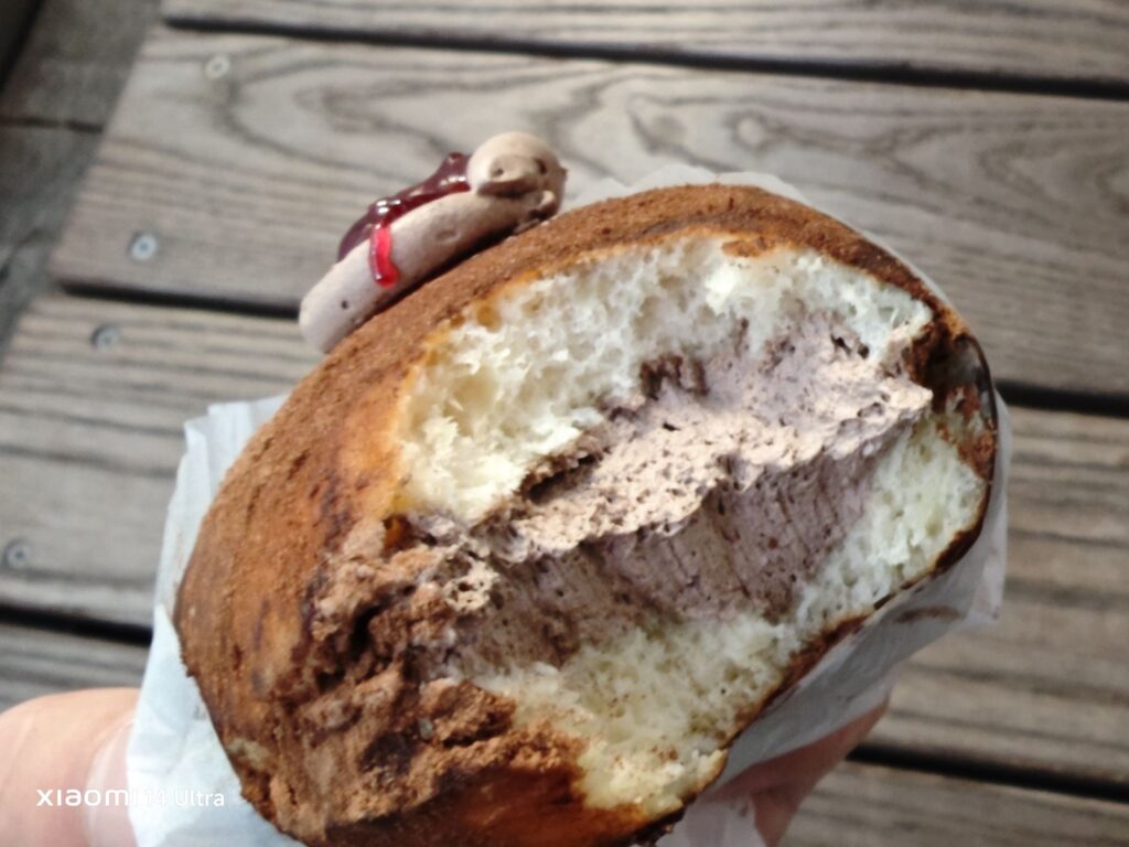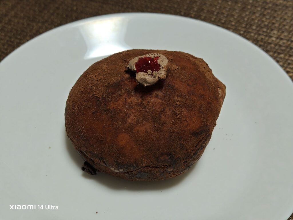上にふられているココアパウダーで絶妙にむせそうになるが、生地のココア感とチョコクリームでしっかりチョコを味わえる一品だった。